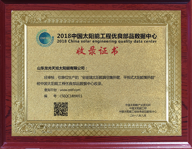 • 全国太阳能光热行业质量领先品牌