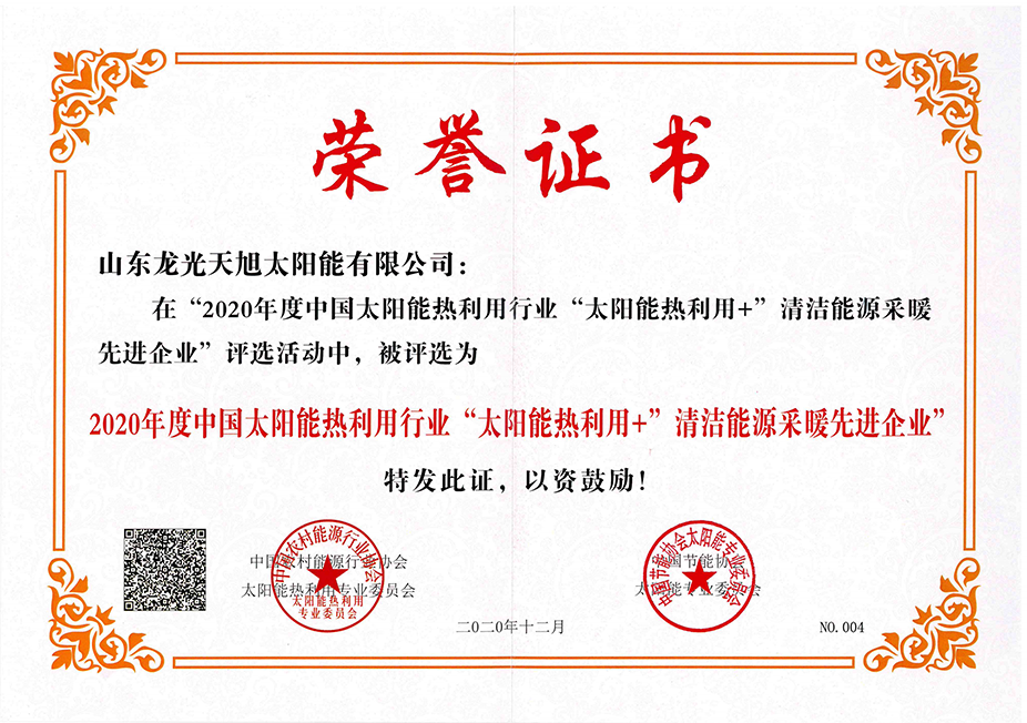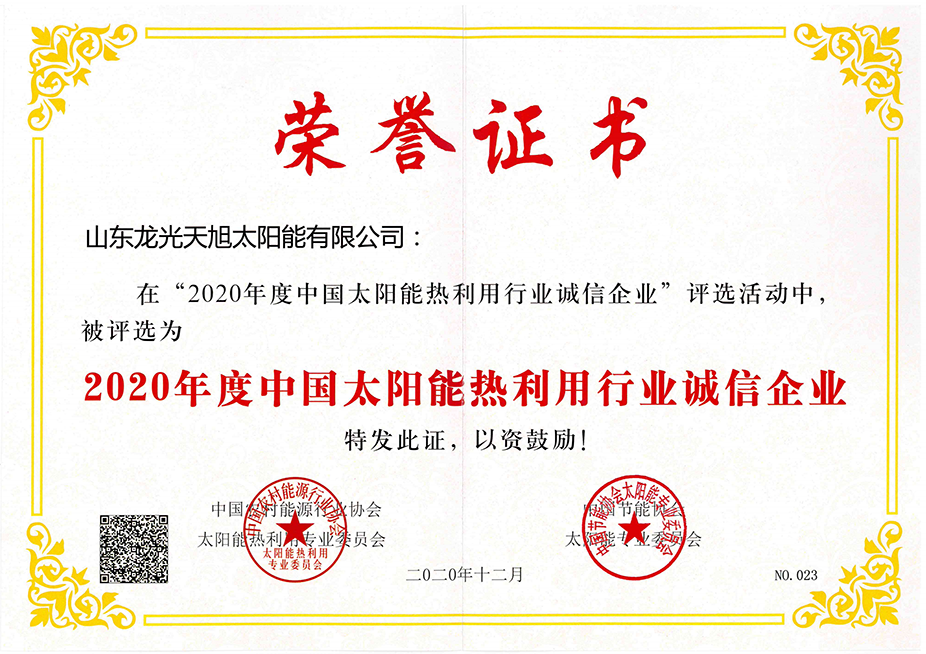 • 2020年度中国太阳能热利用行业诚信企业